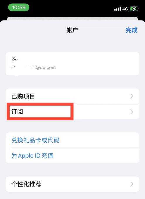 3、进入帐户界面后,点击“订阅”选项。