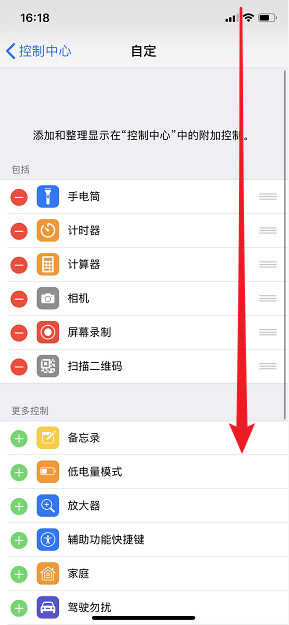 3.在“ 更多控件”列表中,点击“ 备忘录”旁边的绿色“ + ”按钮。