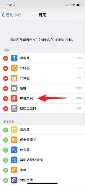 2、在【自定控制】中将“屏幕录制”功能添加至【控制中心】;