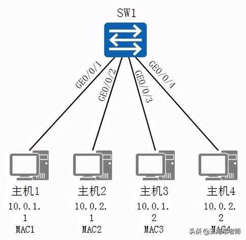 SW1的MAC地址与VLAN表