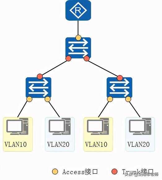 交换机上常用来连接用户PC、服务器等终端设备的接口。Access接口所连接的这些设备的网卡往往只收发无标记帧。Access接口只能加入一个VLAN。