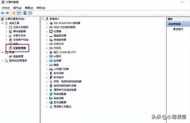 进入计算器管理窗口,找到右侧栏的「设备管理器」,查看电脑的USB驱动有没有出现问题,如果有出现黄色叹号,说明需要更新USB驱动了。