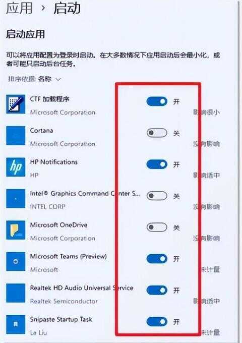 2、可以将启动项里的软件 ,改为 关 的状态 。