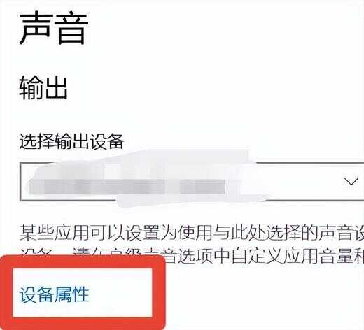 4、在右侧的声音选项中,找到设备属性点击打开。