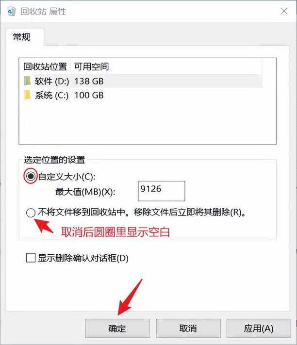 为了解决删除文件时不经过回收站的问题,我们可以将它的这个属性取消掉。