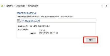 步骤3:在文件历史记录界面中,如果这个功能已开启,则可以在文件历史记录当中找到删除的文件,如果没有开启,则不能找到。为了文件数据的安全,建议立即启用。