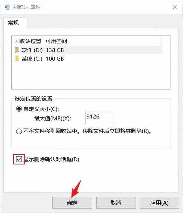 具体操作方法是:鼠标右键单击回收站图标,选择“属性”,在回收站属性面板中,勾选“显示删除确认对话框”选项,点击“确定”即可。