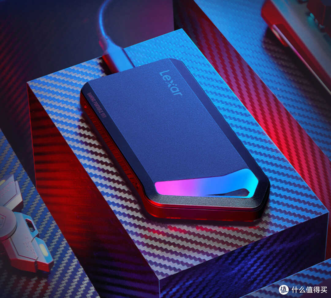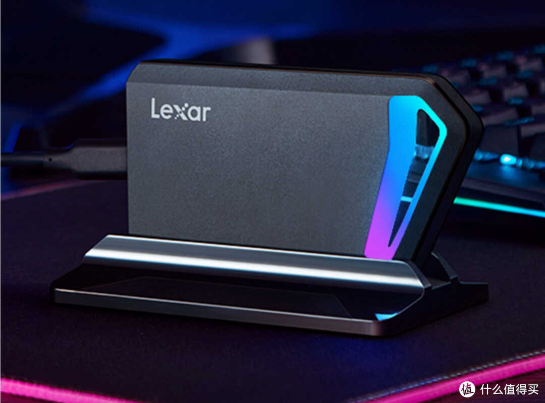 ▲紧接着推荐一款雷克沙(Lexar)的 SL660 BLAZE,之所以推荐这款PSSD,是因为其不仅有着炫酷的RGB灯效,还有着立式支架,更省桌面空间,散热也更有保障。