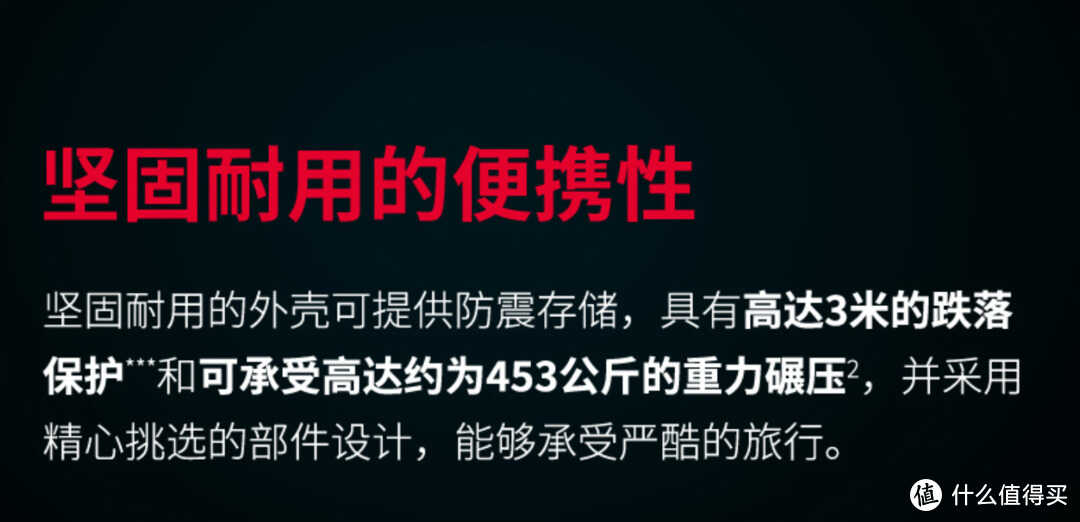 ▲其最大容量为4TB,支持2米防摔,三年质保。