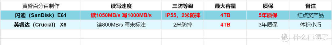 ▲首先推荐一款闪迪的E61,仅名片大小,非常轻薄便携。内部为NVMe固态速度更高,读取速度1050MB/s,写入速度1000MB/s,基本完全跑满了USB 3.2 Gen2的10Gbps带宽,同时价格适中,性价比非常高。