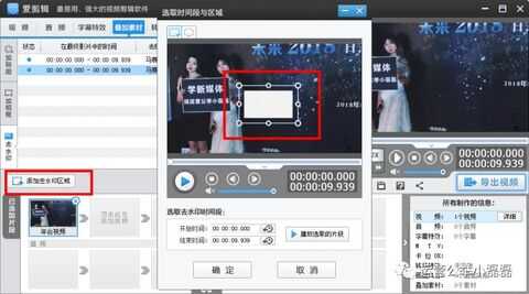 如果之前没有截取时间段,可以在样式选择好后在左边的“添加去水印区域”重新截取,然后会出现一定区域的马赛克范围,可手动调节大小和马赛克的位置,点击“确定”后就会应用到视频里。