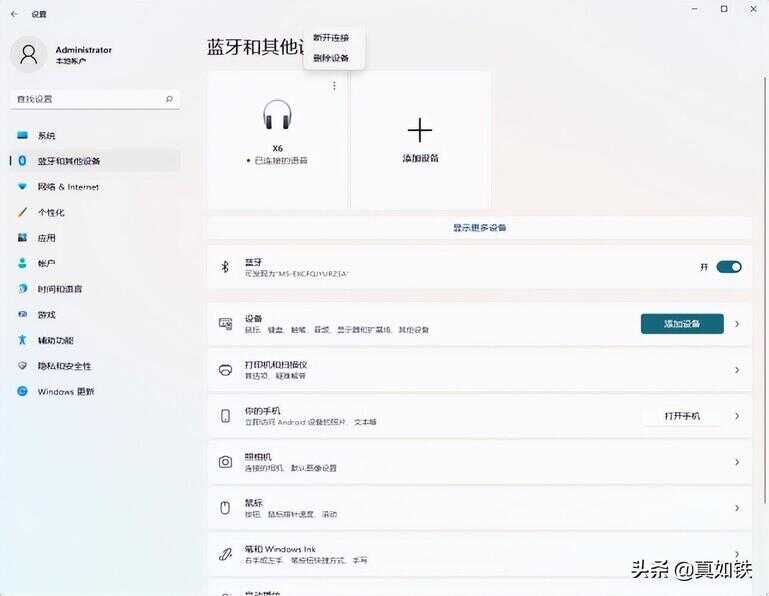 第七步,根据需求,可以选择断开连接或者删除设备。