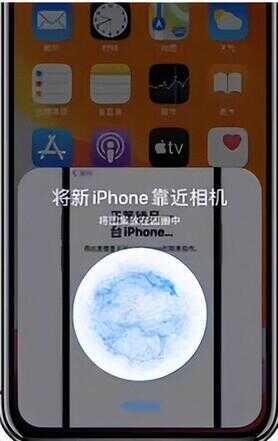 等待新iPhone出现动画,出现动画后使旧iPhone上的取景框对准新iPhone显示的动画图案。