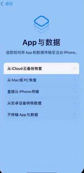 设置新iPhone时,在“App与数据”界面,选择“从iCloud云备份恢复”, 再选择你从旧iPhone备份的版本。