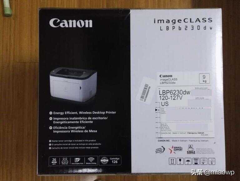 打印机包装侧面标注120-127V,重要的事情说三遍:千万不要直接插市电、千万不要直接插市电、千万不要直接插市电,产地:越南,含包装9KG