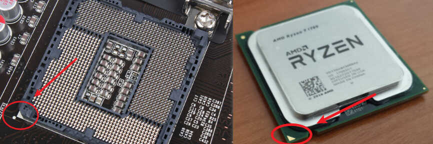 例如下图,直接将CPU的三角指向和插槽的三角指向相互对应起来即可(这点一定要注意)。