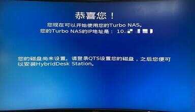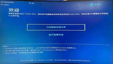 首先是产品激活部分,我们将产品链接至显示器设备,基于该产品支持热插拔服务,因而我们可以暂时不安装希捷酷狼Pro硬盘,空盘启动后,进入系统提示“无法检测到磁盘”后,此时可以将希捷酷狼Pro硬盘放入NAS设备,经过短暂的安装、兼容性校准以及初始化后,NAS设备开始进入智能安装向导。