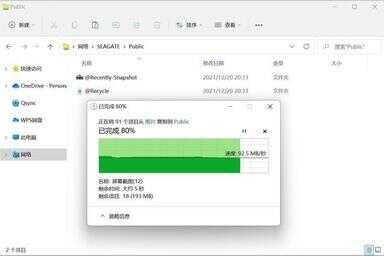 为了验证云存储的实际性能,我们将本地的文件,通过网络传输的方式拷贝到NAS云空间内的希捷酷狼Pro硬盘之中,实际测试下,平均性能大体保持在93MB/s左右,整个传输过程十分流畅,没有出现较大的数据波动,展现了作为企业级机械硬盘,希捷酷狼Pro硬盘在稳定性上的独特优势。