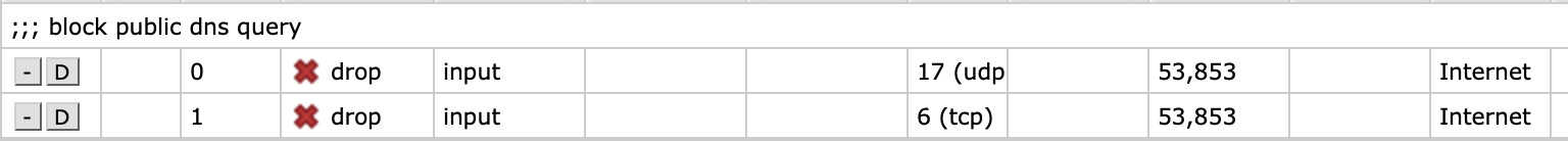其实就是为了阻断从外界过来的DNS查询的,遇到这些查询直接抛弃掉。如果不做这个,每天有大约几十万个DNS查询数据进来,肉鸡在跑各种扫描脚本。这其实就是拖慢你网络速度的一个很重要原因。网关(路由器)暴露在外有大量的无意义信息要去处理。所以有的时候你改了桥接,获得了公网iP反而觉得网络速度下降了,也并不是你的设备不行,而是这段时间你周边的的网络有满满的恶意。