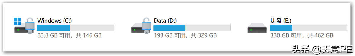 目前已经比较普遍的应用在我们的电脑当中了。尤其是一些笔记本电脑和品牌机。当我们打开资源管理器的时候可以看到磁盘是这样的: