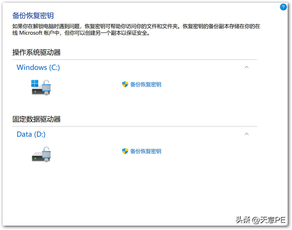 可以看到标识符和恢复密钥都在文本里。我们用WinPE维护电脑的时候可以通过密钥解锁硬盘了。