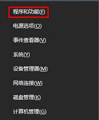 5、使用“win+x”打开菜单,点击选择“程序和功能”,如下图所示: