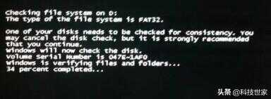 这种信息要注意最后的关键词,就是有个数字在走,然后是percent completed...比如上图34 percent completed是百分之三十四完成的意思。这也不算是错误,一般是电脑异常关机或者磁盘有坏道情况,然后开机的时候自动磁盘扫描自检,等扫描结束就好。如果这个过程很久很久都不能完成,你的硬盘应该是出问题了。