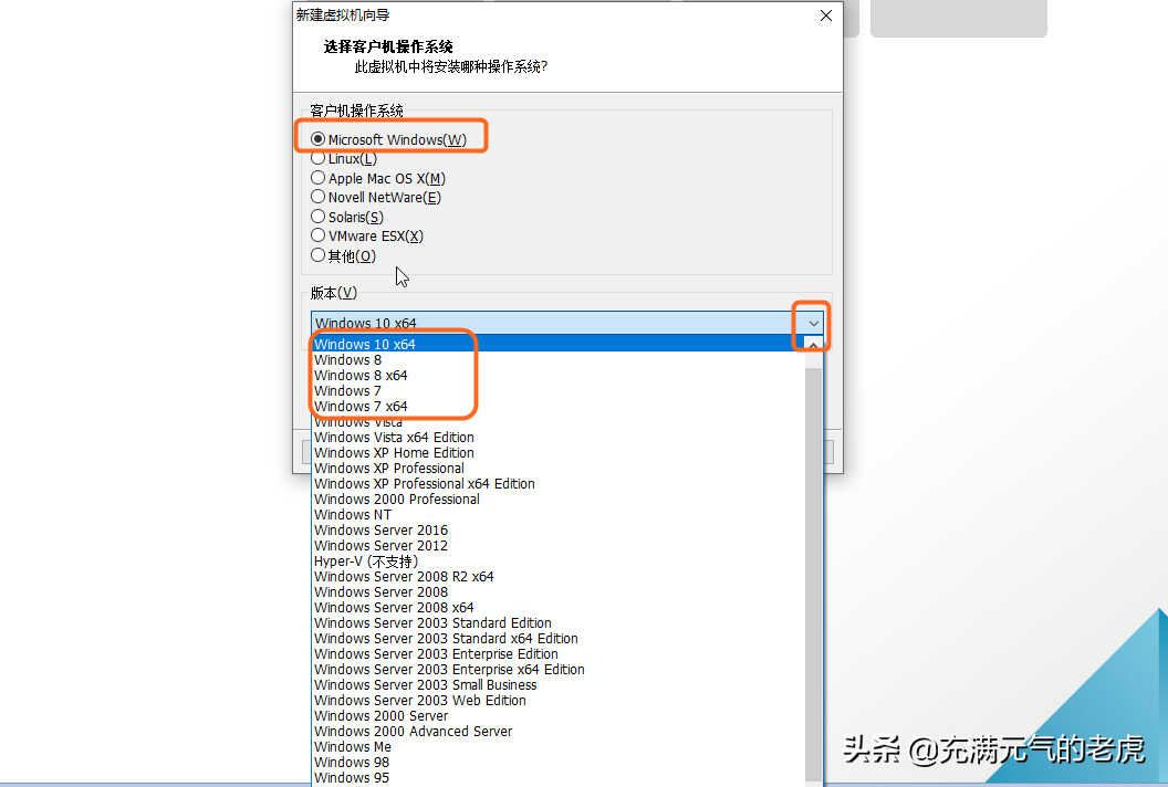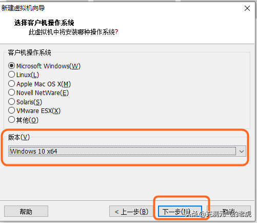 第四步:选择客户操作系统类型Microsoft windows,版本选择windows 10 X64,然后点击下一步。