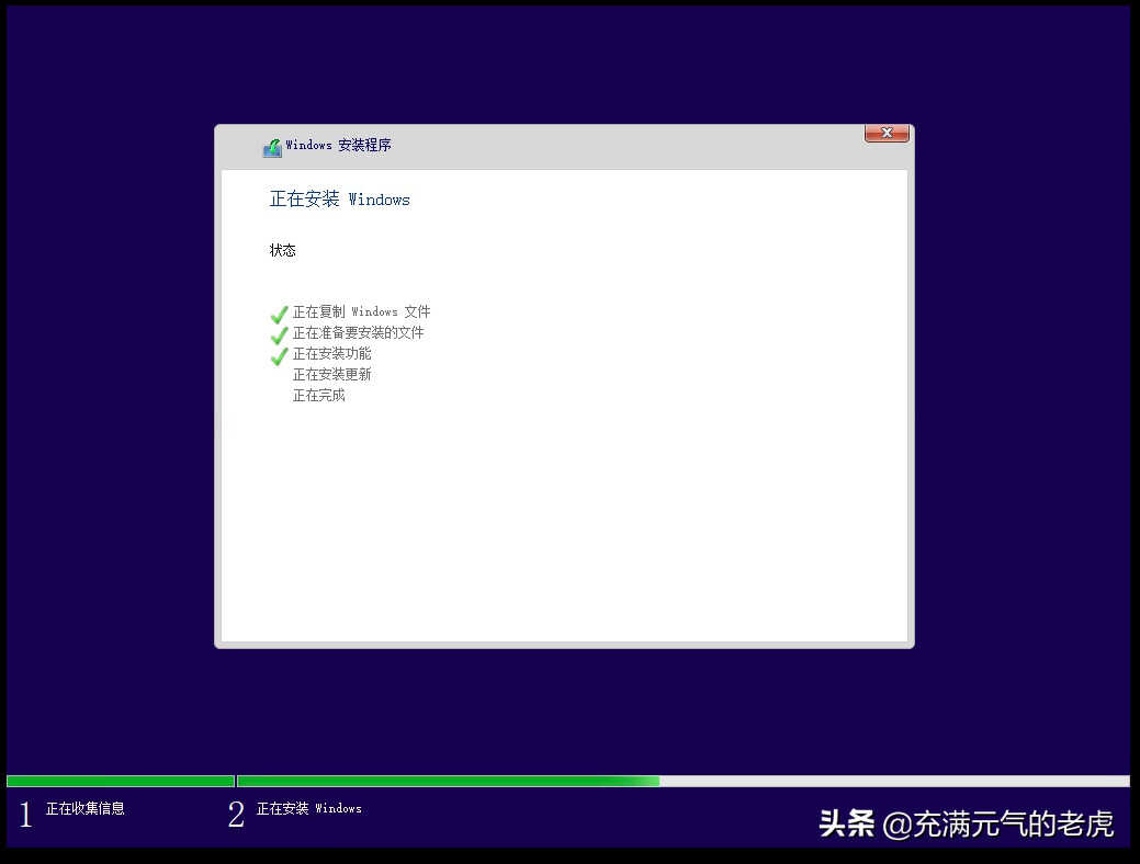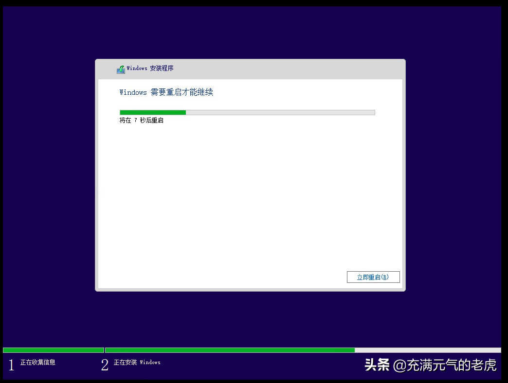 第八步:点击左上角的开启次虚拟机,windows10就自动开始安装了