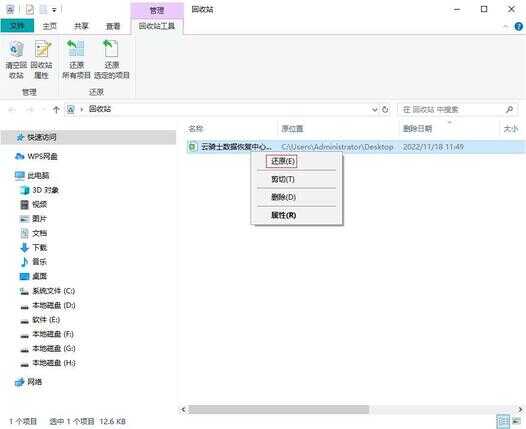 2. 在回收站中筛选找到刚刚删除或之前删除的文件。
