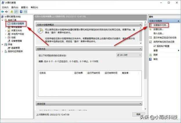 然后从左侧目录中依次点击“系统工具——任务计划程序”,接下来在右侧点击“创建基本任务”。