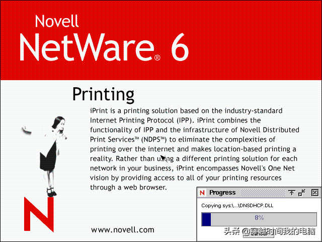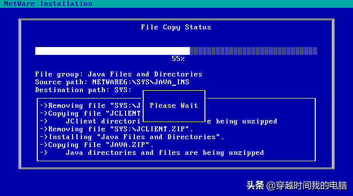 在新的文件复制阶段开始之后,文件复制的目的地就变成Netware分区中的SYS:了
