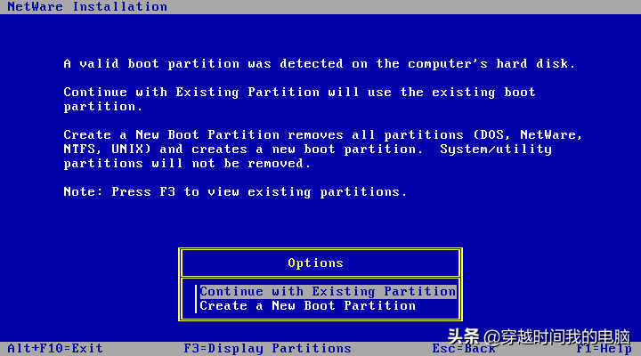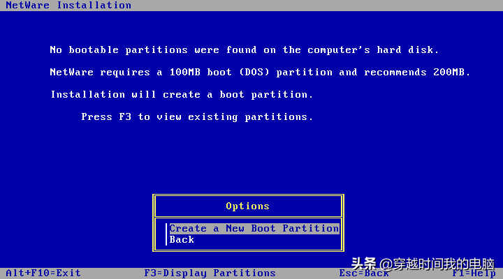 因此这里的硬盘分区其实包含两步,一是创建Netware partition,二是在Netware partition中创建volume SYS: