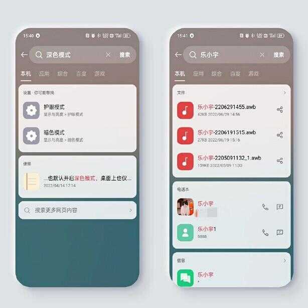 它能搜到手机上的完整设置项,能一键直达;能搜到手机便签上的详细内容,能查看详情;能搜到手机中的文件,能直接分享;能搜到电话、信息等内容,并能直接操作……