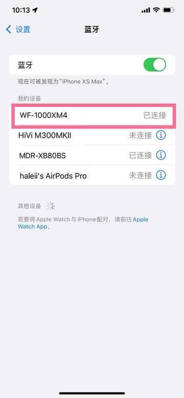 2、在iPhone上找到蓝牙设置,先开启蓝牙,然后在蓝牙列表中点击耳机名称即可配对。