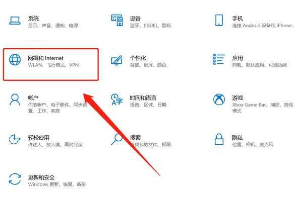 在系统“设置”界面内找到“网络和Internet”选项。如下图: