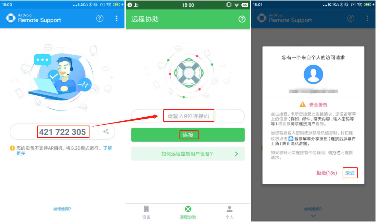 被协助方可在Remote Support中选择立即开启屏幕共享,协助方也可以在AirMirror邀请对方开启屏幕共享