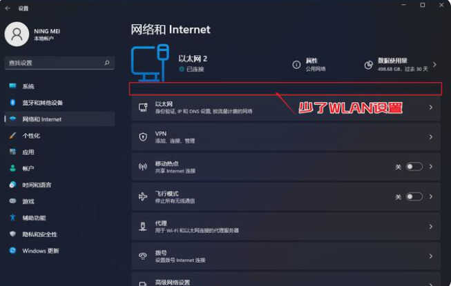 1、当按上面的操作找不到WLAN(如下图)的时候,说明台式机没有内置无线网卡或者无线网卡模块坏了。