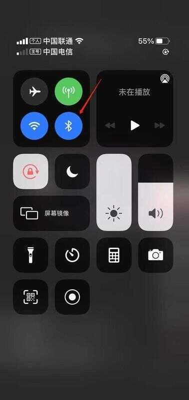 2:设置个人热点为可发现状态,进入控制中心,点击蓝牙键屏幕三秒即可进入设置中心,再开启热点,如图