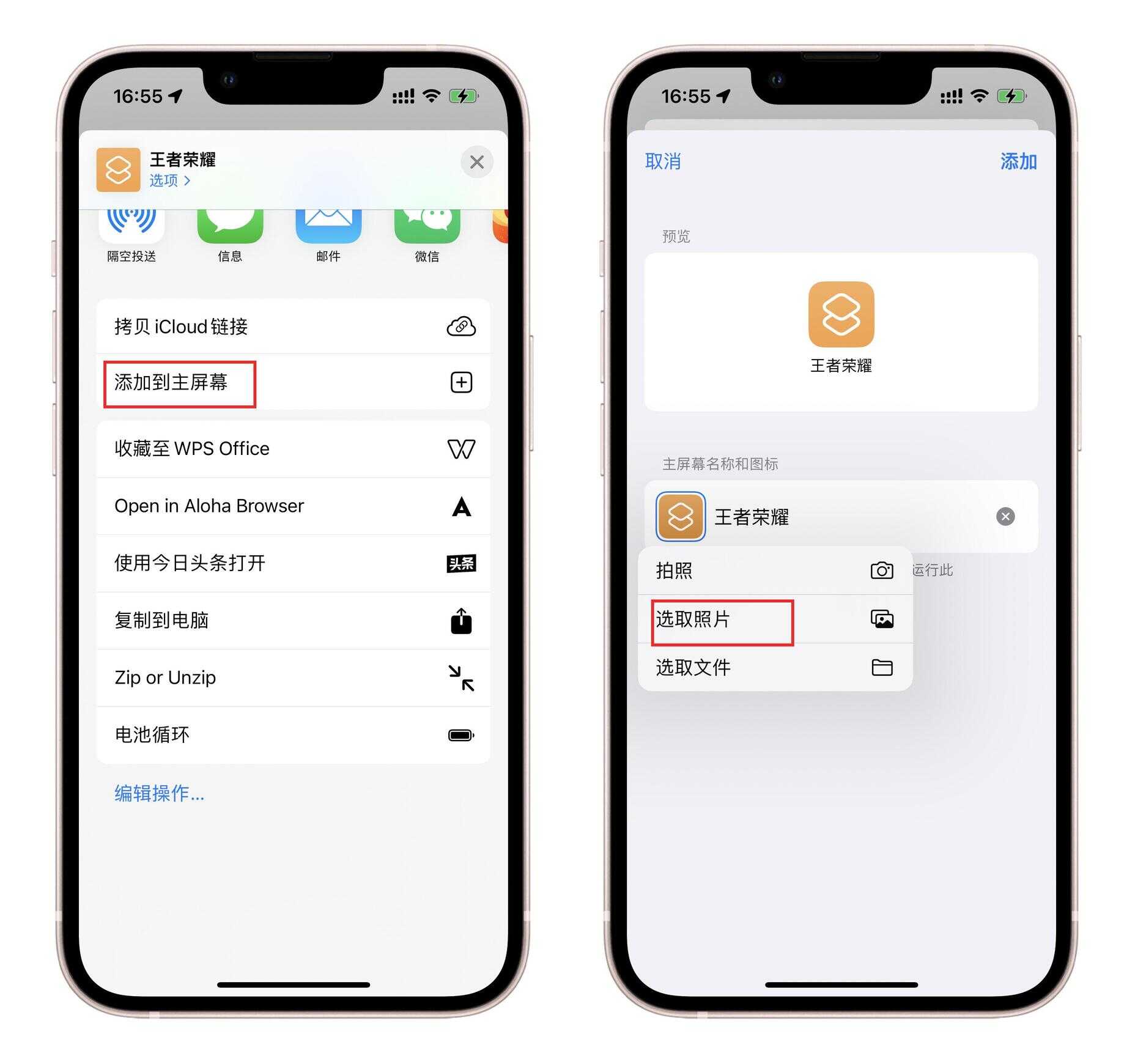 然后将创建好的快捷指令修改名字,并添加到主屏幕上,再修改其图标即可。