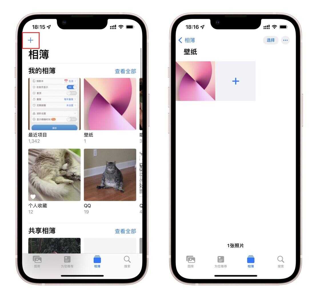 首先需要在照片App 中添加一个新的相簿,修改好名字(如“壁纸”等等),并将想要设置的壁纸放进去。