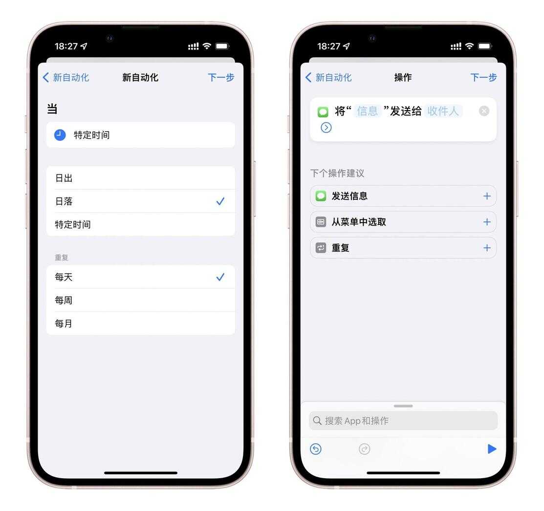 目前利用iPhone自带的快捷指令功能已经可以实现自动发送短信甚至是微信消息。同时,消息的内容除了一些固定的内容外,也可以是像天气信息一样会不断更新的内容。