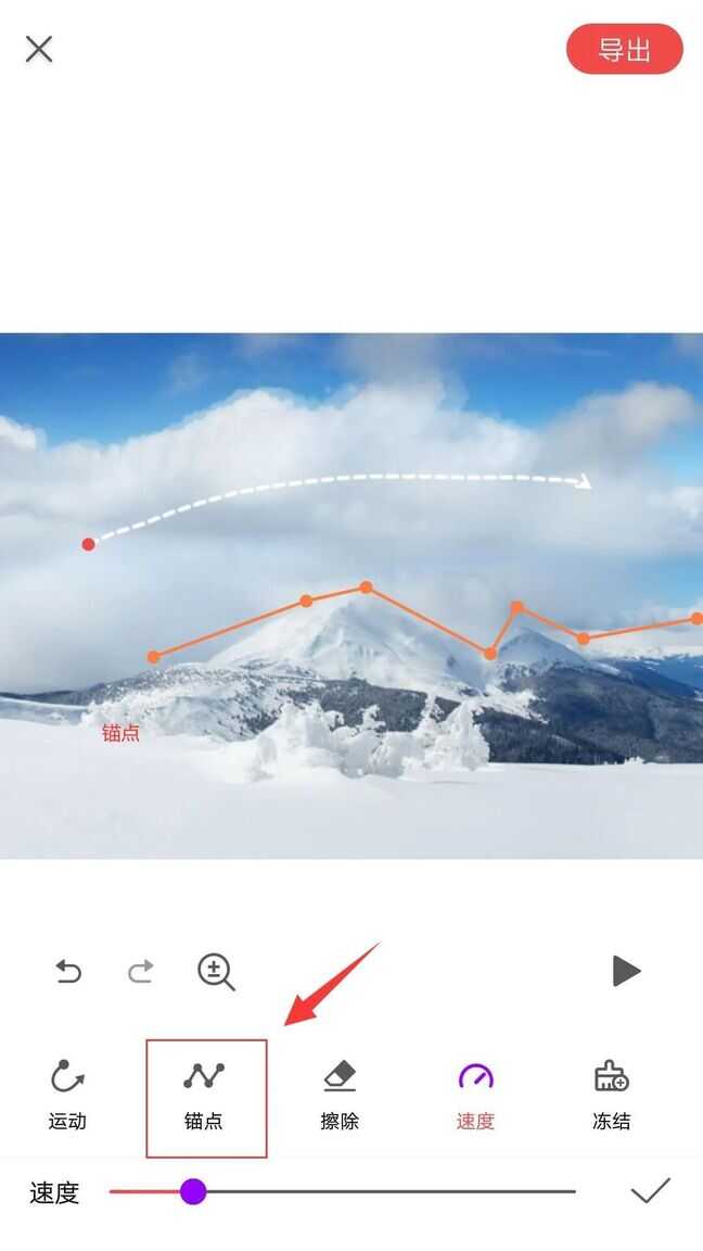 由于云朵的运动路径和山体挨得很近,临近的山棱也产生了运动,这里可以通过添加「锚点」来固定山体。