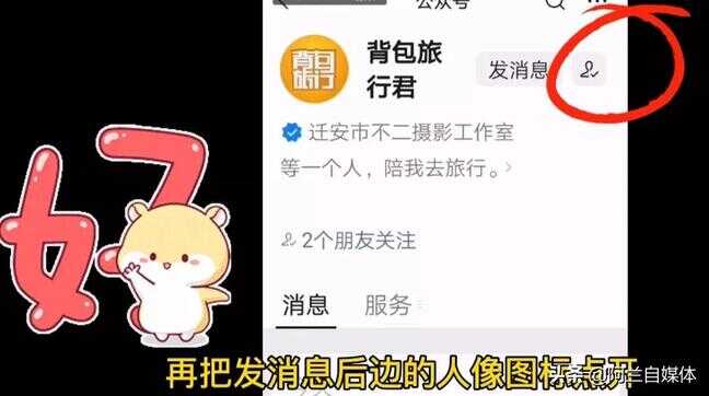 比如说我不想收到这个订阅号推送的消息啦,我就把它点开,注意看右上方有一个人像,我们把人像点开,再把“发消息”后边的人像图标点开,再点下方的“不再关注”,那么这个订阅号我们就不再关注它啦,它也就不会再给我们推送新消息啦。