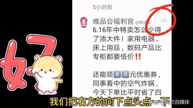 下面再给大家分享一下怎么来减少朋友圈的广告跟踪,比如说我们在朋友圈经常看到这样的广告,怎么关闭呢?我们把右方的向下的箭头点一下,立刻就出来了“我不感兴趣”的字样,我们把“我不感兴趣”的字样点一下,这个广告立刻就消失啦。