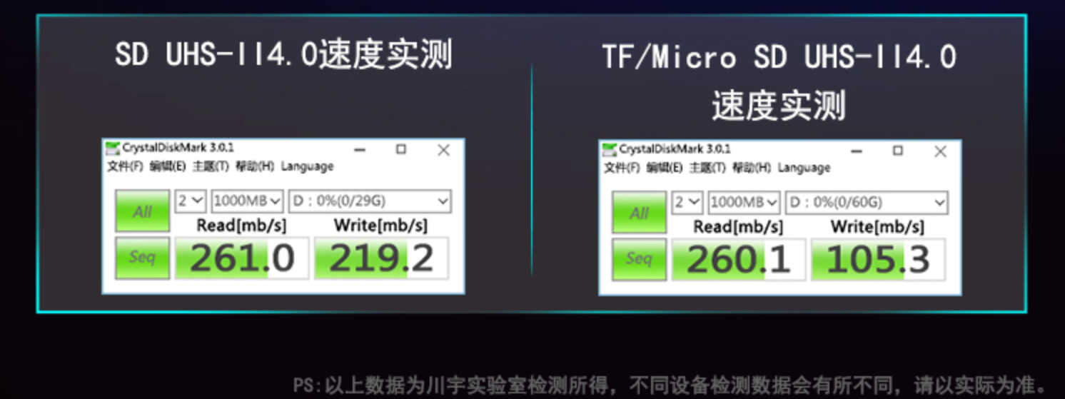 内存卡的读写速度遵循木桶效应,所以买内存卡之前要先确认自己的设备到底是UHS-Ⅰ版本还是UHS-Ⅱ版本,不要买了好卡却无法使其发挥全部性能。