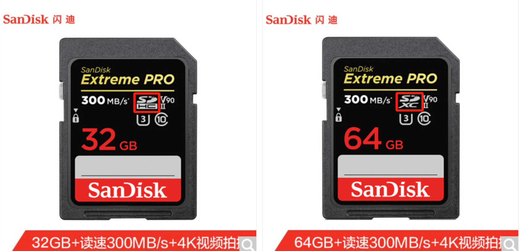 ▲比如同样是闪迪的至尊超极速卡,32GB的便是SDHC卡,而64GB的则被称作了SDXC卡,只不过大家都习惯将其统称为SD卡了。