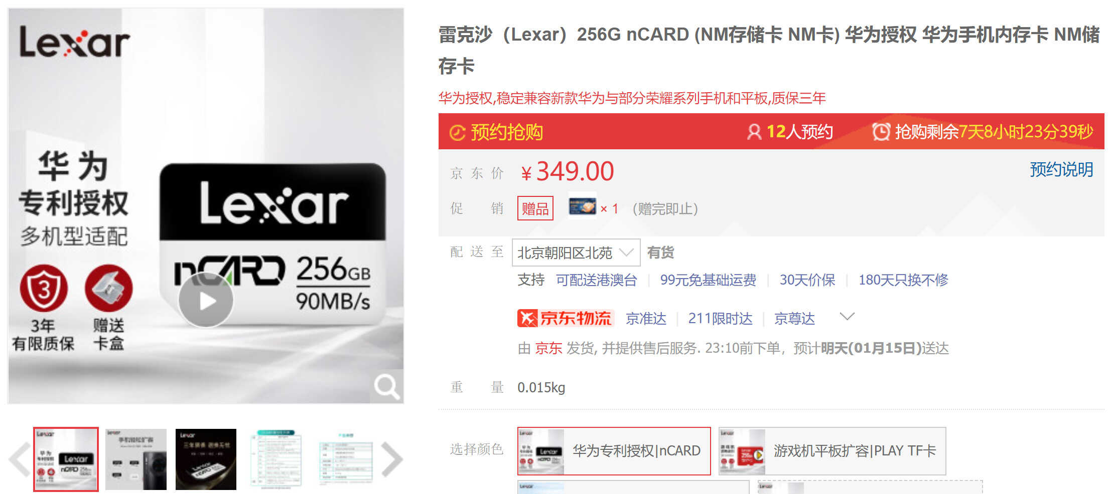 ▲貌似所有NM卡的读取速度均为90MB/s,写入速度为70MB/s,所以只放一张雷克沙的nCARD举例,大家可以根据各品牌当时的折扣情况选购。