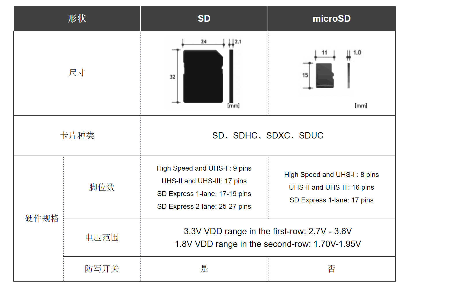 ▲之前有朋友问我,TF卡和SD卡除了大小还有什么区别,我今天也就整理到文章中,简单来说,microSD卡是SD卡组织后收编的,收编之前叫做TF卡,而micro是“小”的意思,所以,目前TF卡和SD卡除了金手指脚位数不同,SD卡有防写入开关而TF卡没有之外,就只剩下尺寸的区别了。
