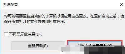 3、弹出提示框口,我们点击退出而不重新启动(X)按钮,如下图所示: